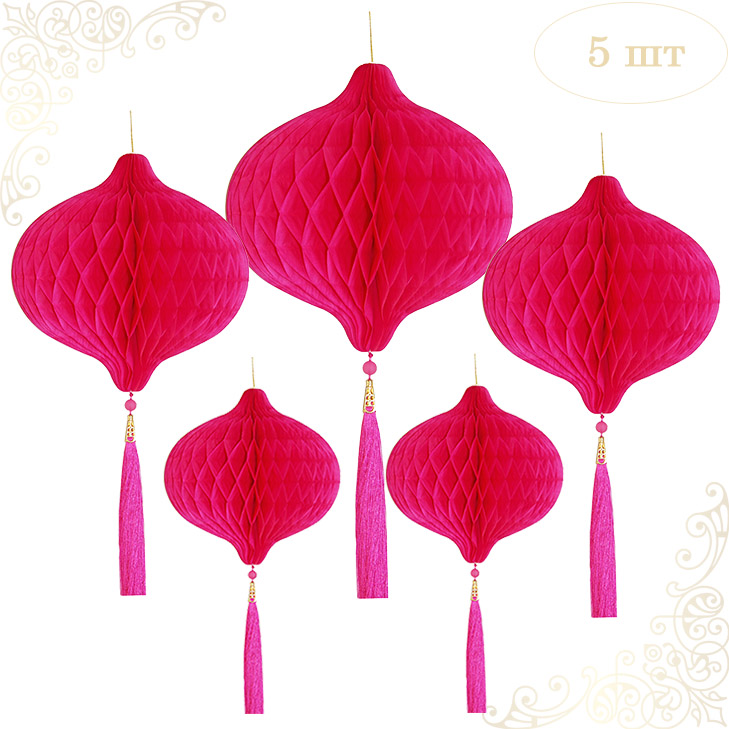 НАБОР бумажное украшение Шары-соты с кисточкой, малиновый - 5шт: