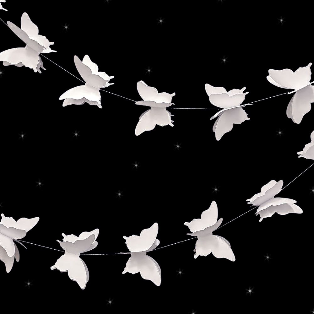 Расправьте крылья и создайте праздничное настроение. Гирлянда идеально подходит для украшения детских комнат, свадеб, окон, стен и фотозон. Объемные бабочки на нитке добавят нежности и легкости интерьеру.
