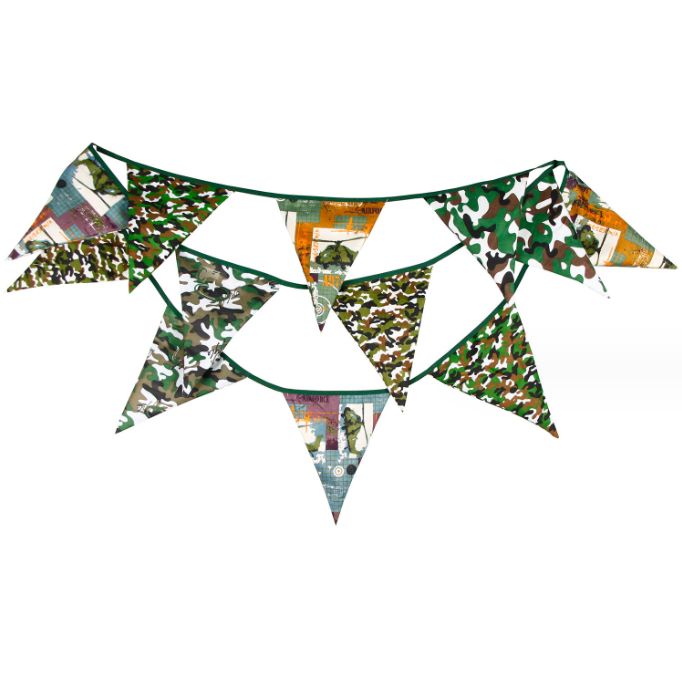 Гирлянда состоит из 12 флажков. Расстояние между флажками - 6 см, общая длина составляет 4 м.