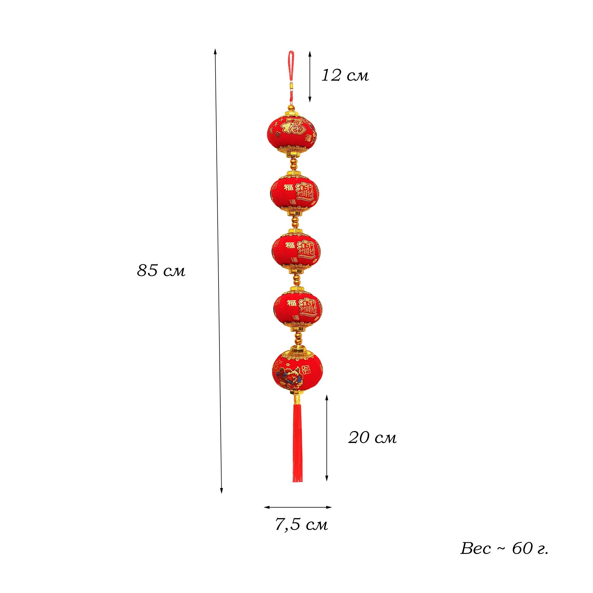 Китайская подвеска с рисунком 7,5х85см, Фонарики