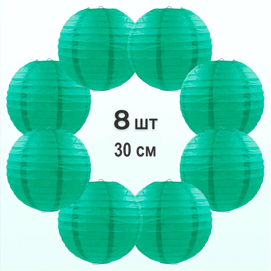 Комплект подвесные фонарики 30 см х 8 шт, изумрудный