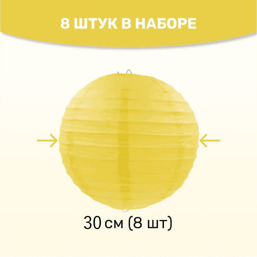 Комплект подвесные фонарики 30 см х 8 шт, желтый