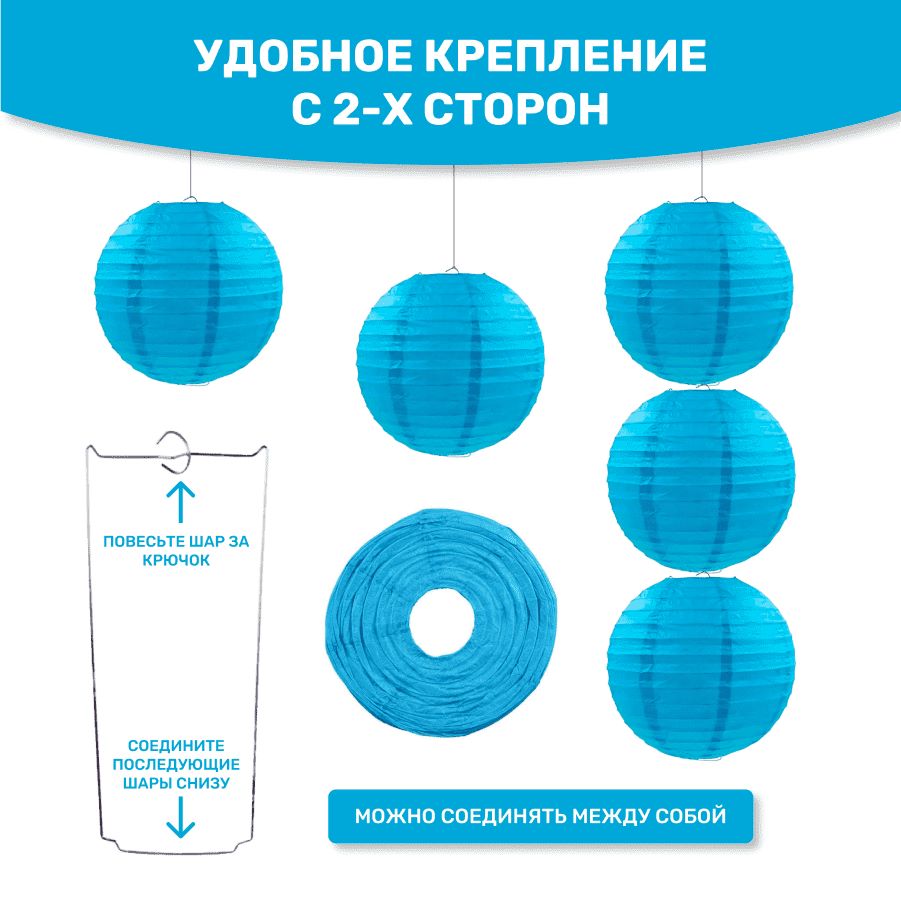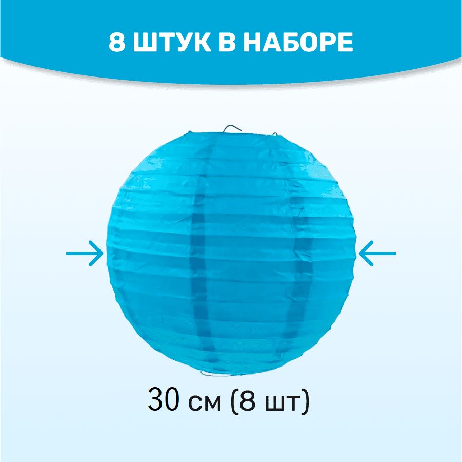В комплект входит 8 бумажных фонариков и лента.