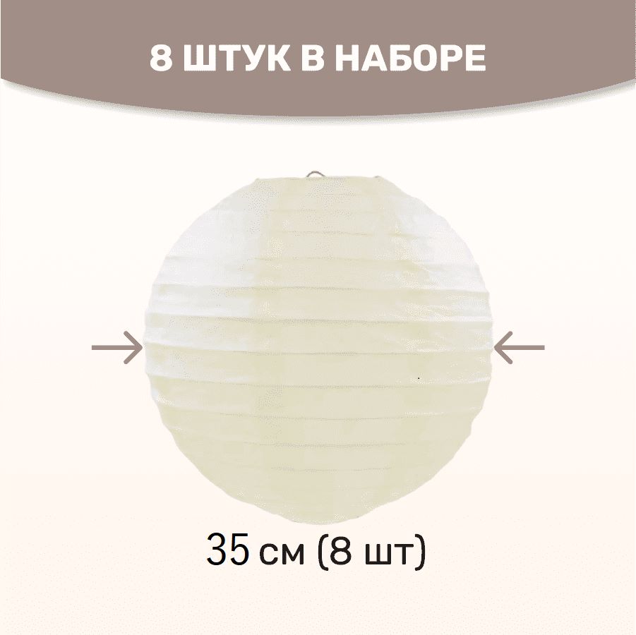 Комплект подвесные фонарики 35 см х 8 шт, айвори