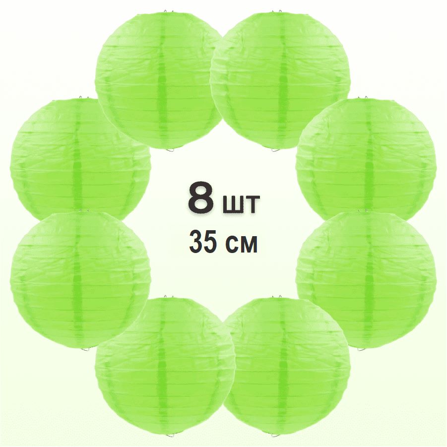 Комплект подвесные фонарики 35 см х 8 шт, салатовый
