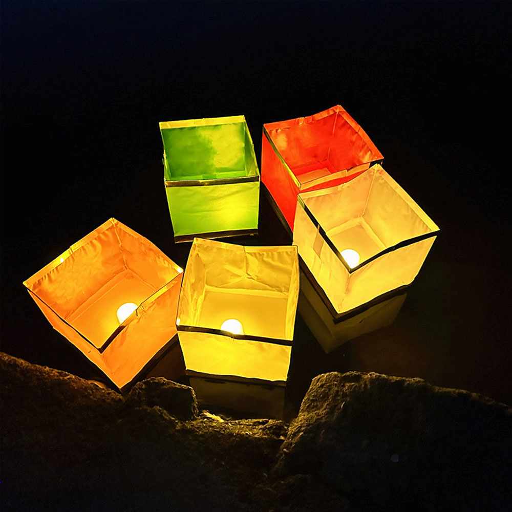 Плавающий фонарик "Куб" 11х11 см золото+красный