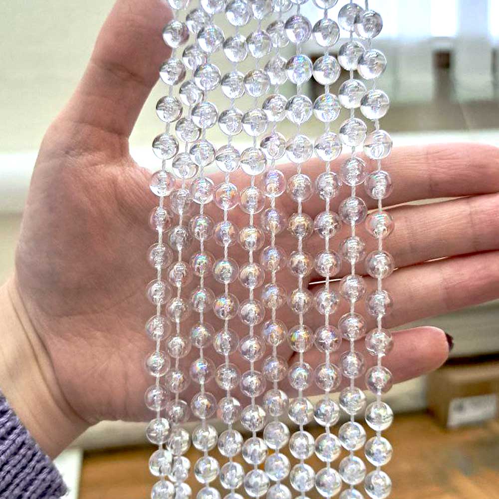 Празддничное оформление - можно собрать из бусин шторы или украсить люстры.