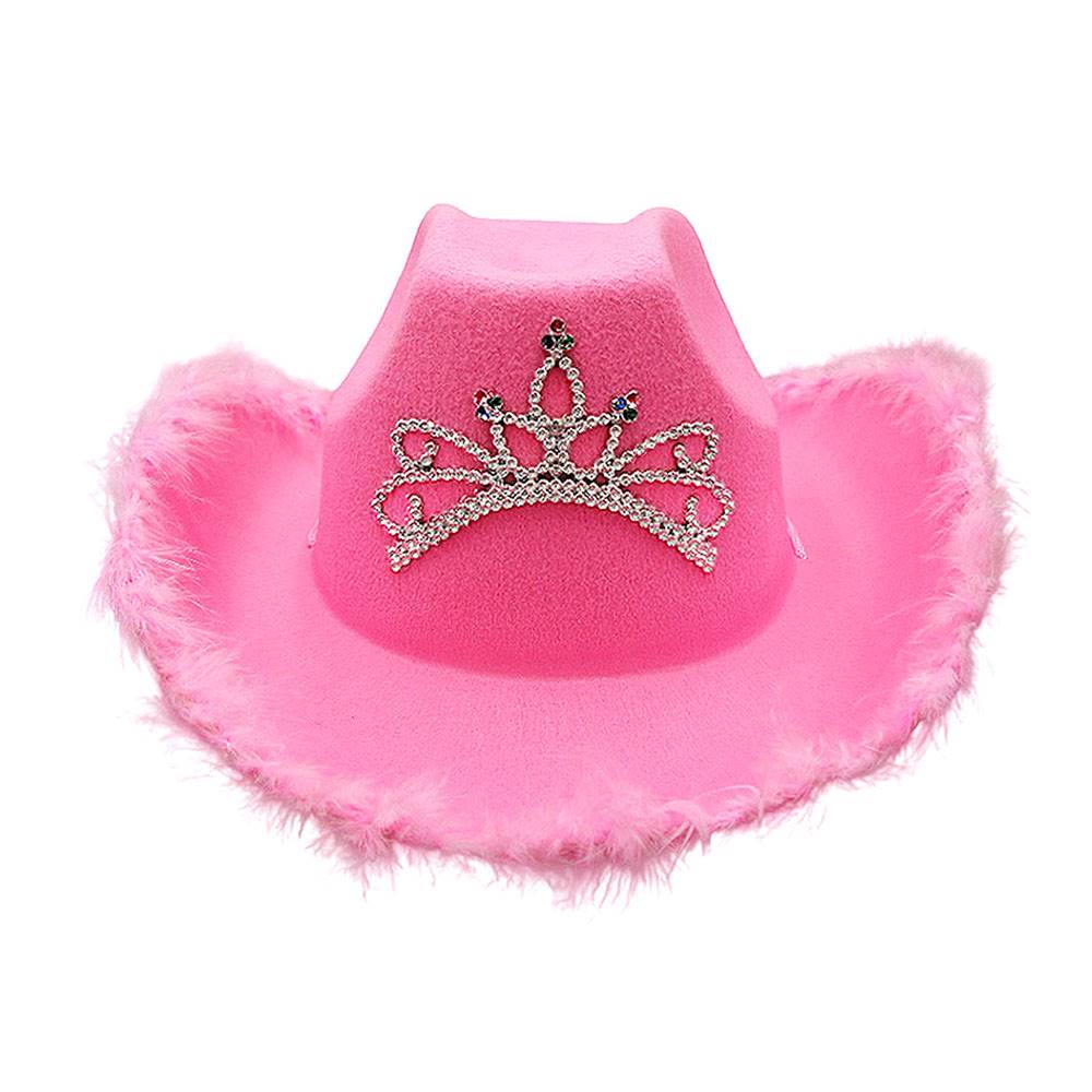 Шляпа ковбойская с перьями и короной, светло-розовый