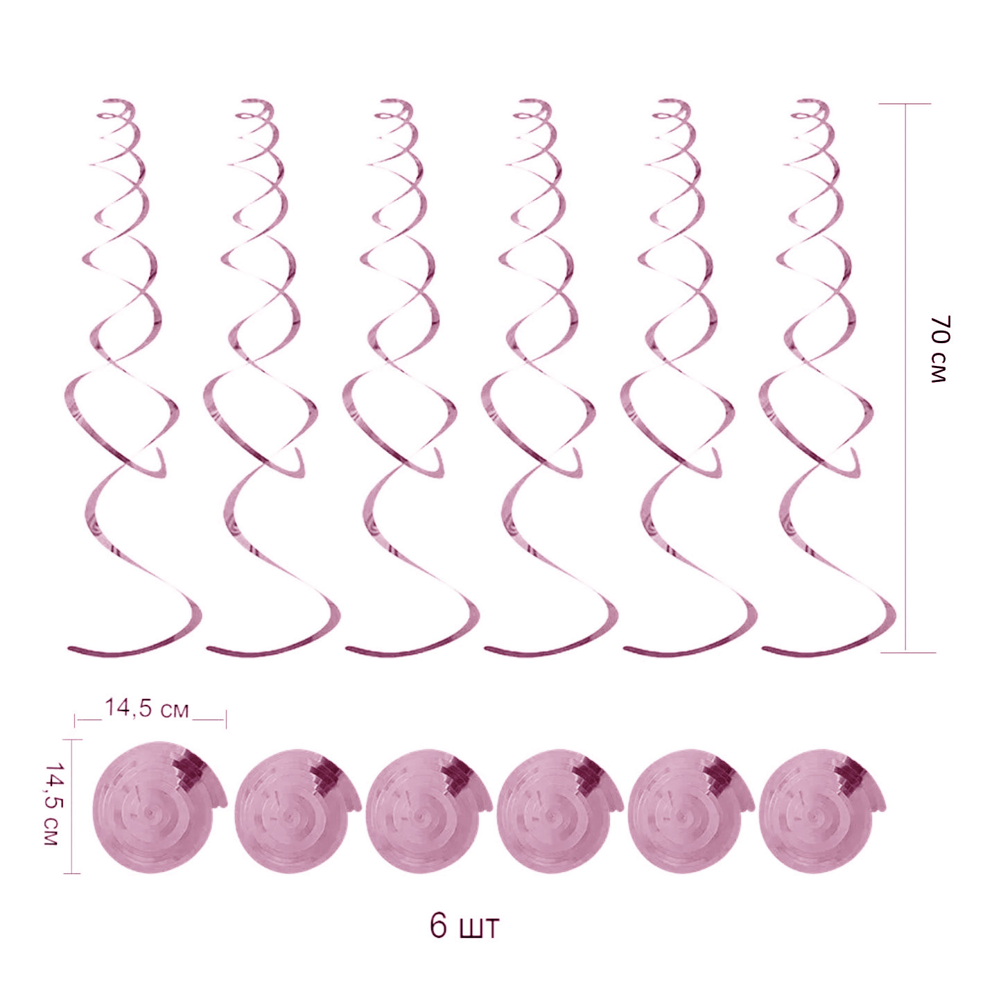 Спираль пластиковая 70см 6шт, розовый